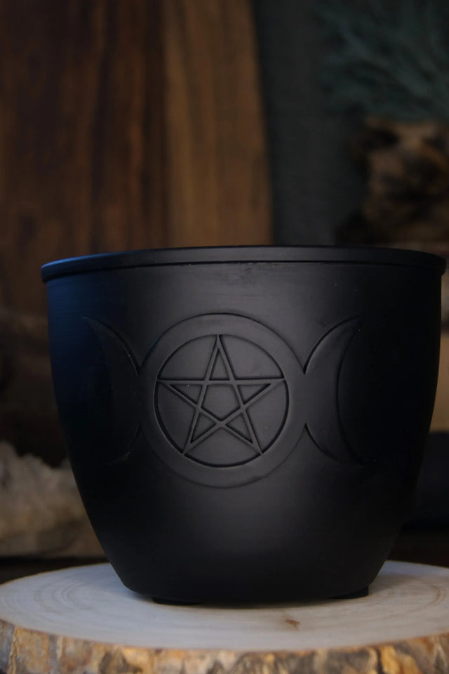 Metal Burn Pot & Pillar Candle Holder - Triple Moon w/ Pentacle Large
