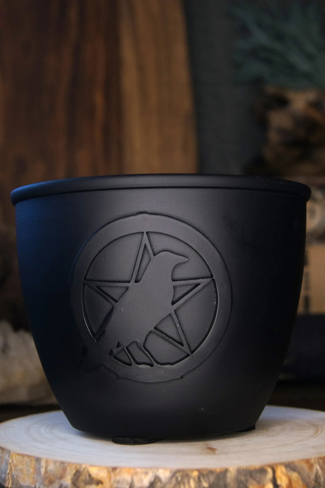Metal Burn Pot & Pillar Candle Holder - Pentacle w/ Raven Large
