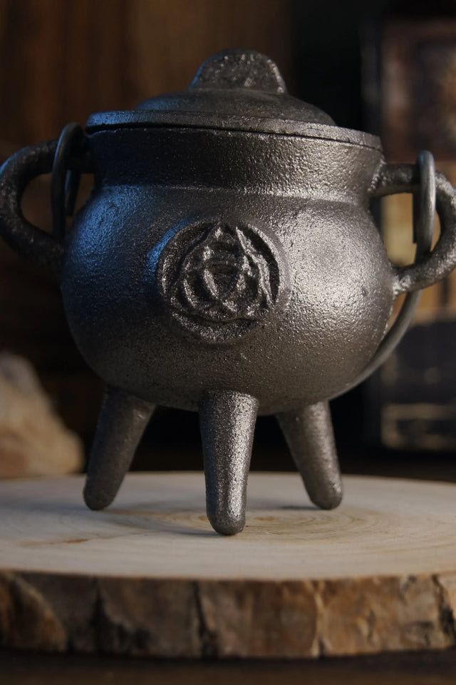 Mini Triquetra Cast Iron Cauldron w/ Lid (3.5 in.)