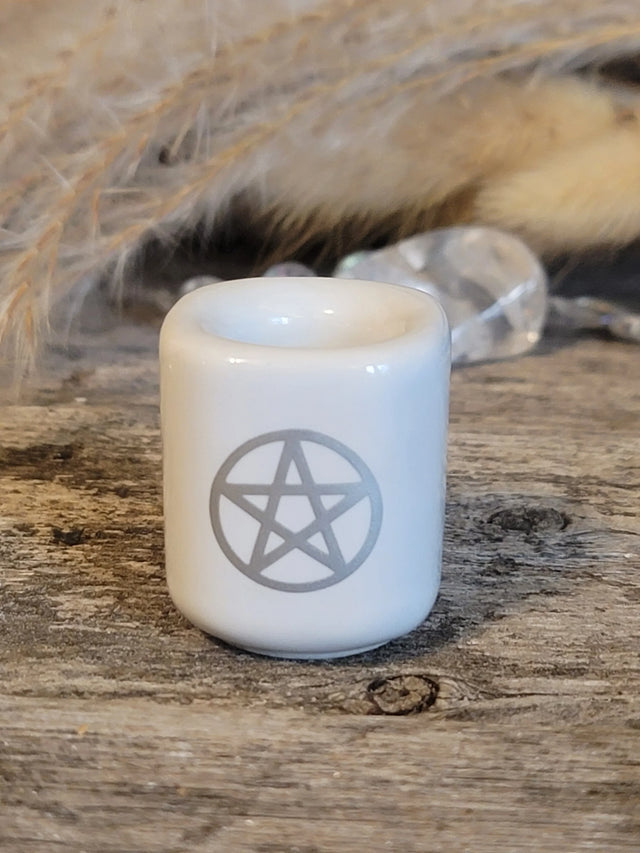 Ceramic Chime Candle Holder - White w/ Silver Pentacle