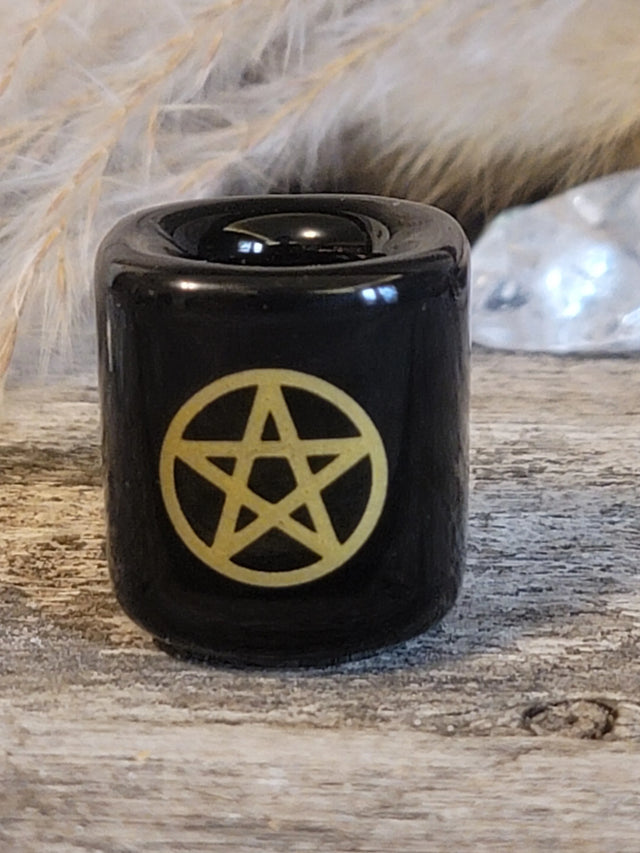 Ceramic Chime Candle Holder - Black w/ Gold Pentacle