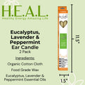 H.E.A.L.'s Eucalyptus, Lavender & Peppermint Ear Candles are handcrafted with certified organic cotton cloth and premium food-grade wax, infused with a refreshing blend of essential oils for a naturally enhanced aromatherapy experience. Each 10-inch hollow candle is carefully made to ensure a clean, smooth burn.