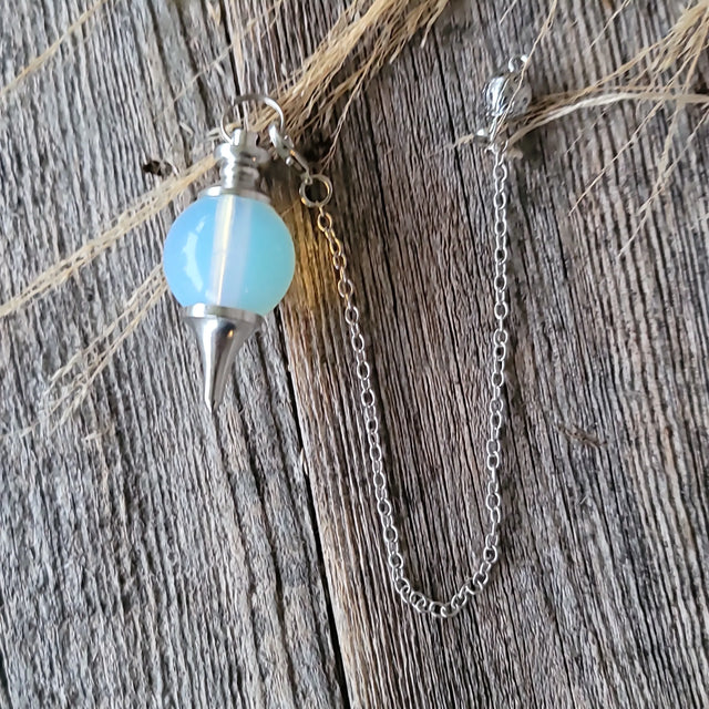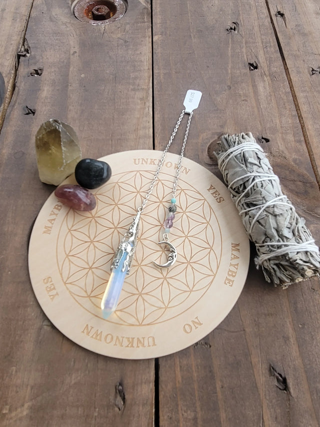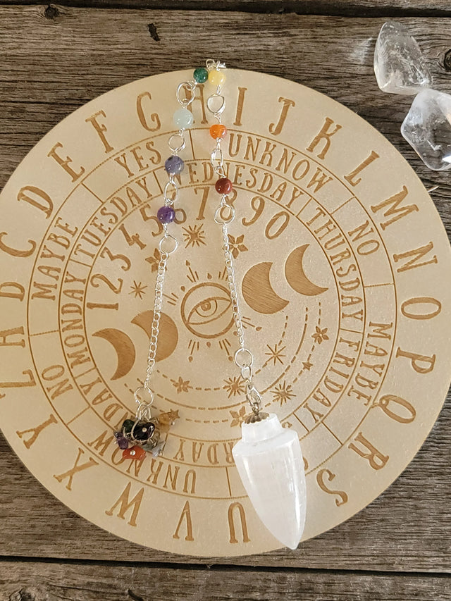 Selenite Pendulum with Prehnite, white turquoise, and horse charm
