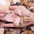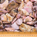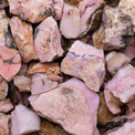 100% natural and imported from Peru. Stone Size: 0.5" to 8" per piece avg. Color: Pink The sizes and colors are averages. It is possible to get pieces outside this range, or with other variances in shapes, color shades, patterns, clarity, translucency, number of pieces or other characteristics which can vary each time natural stones are mined.