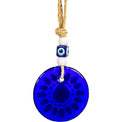 Invite harmony and protection into your space with this Circle of Fatima Hands talisman. The radiant blue glass design combines the protective power of the Evil Eye with the blessings of the Hamsa, symbolizing strength, peace, and divine guidance. Adorned with traditional bead accents and a jute cord, it serves as a timeless emblem of spiritual protection and goodwill.Â